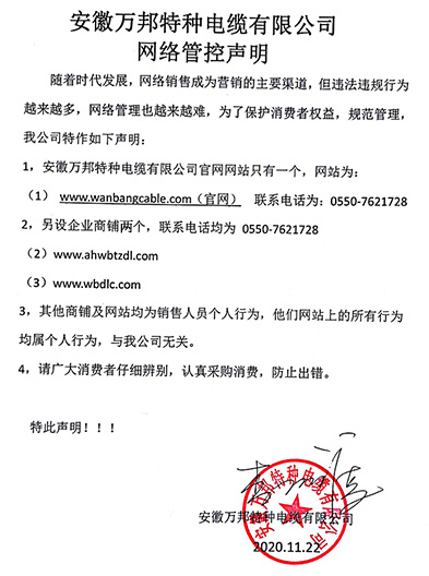 鄭重聲明:安徽萬邦特種電纜有限公司官方網站為:www_wanbangcable_com.wusqw2.cn,除此之外無任何子網站或合作網站,其余均為假冒偽劣。電話:0550-7621728 13485756353 地 址:安徽省天長市滁州高新技術產業開發區經四路29號